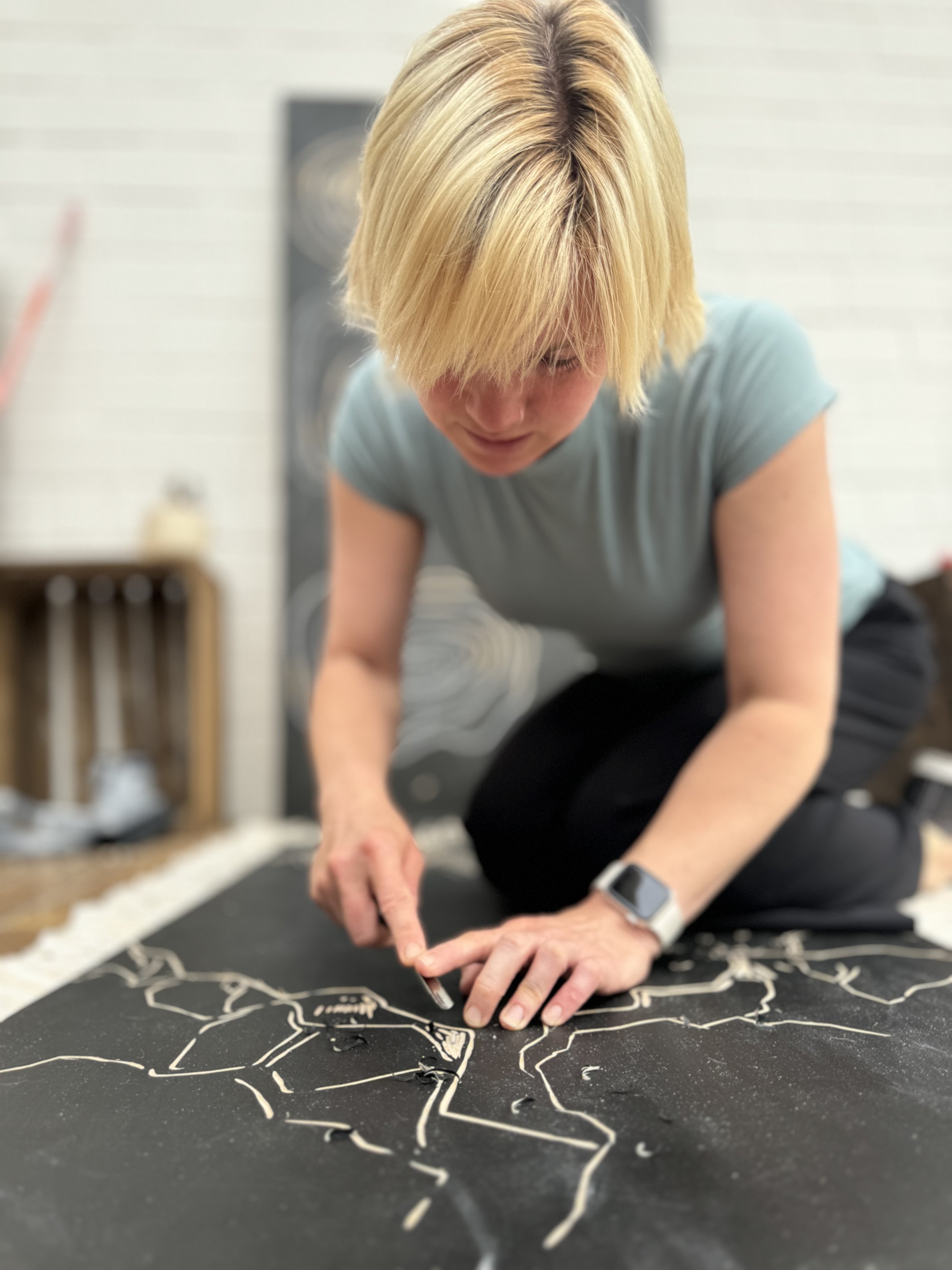 in meiner Arbeit setze ich mich mit den Spuren auseinander, die wir hinterlassen. im Holzschnitt habe ich eine Möglichkeit gefunden, den Arbeitsprozess offenzulegen und gleichzeitig meine eigenen Ideen und Entwürfe umzusetzen.